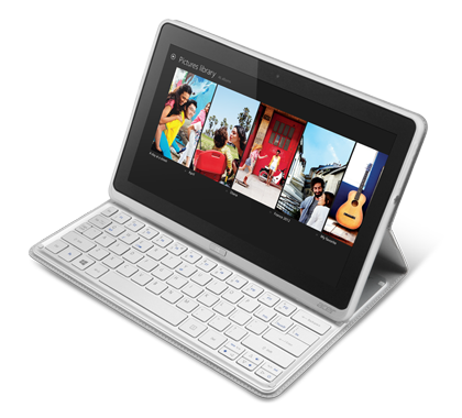 Just snap the Iconia W7 into its multi-purpose cradle2 and choose the best perspective: portrait for viewing pictures and reading, or landscape for comfortable touch control, notebook-style viewing and keyboard2 productivity. Get the right angle with 20º and 70º tilt.